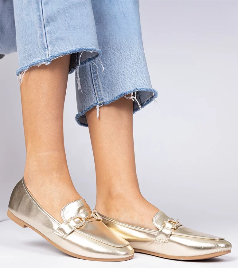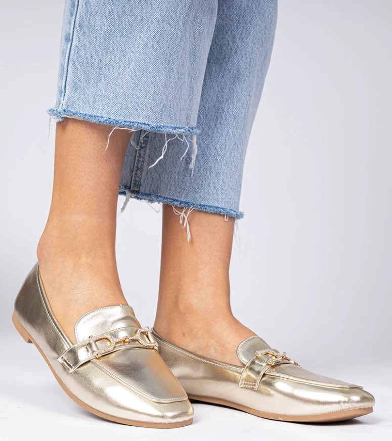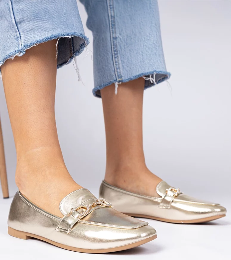 Nasze mokasyny damskie wyróżniają się nie tylko złotym kolorem, który przyciąga wzrok, ale także subtelnymi cyrkoniami, które dodają im wyjątkowego charakteru. Idealne na wieczorne wyjścia, spotkania biznesowe czy codzienne noszenie, te mokasyny są wszechstronnym dodatkiem do Twojej garderoby.