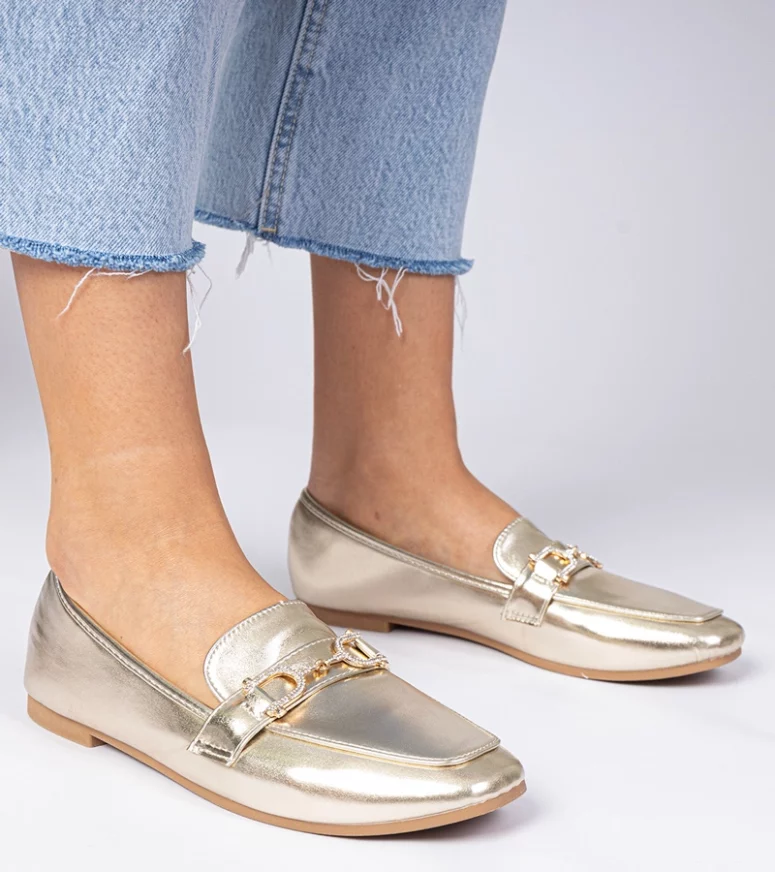 Złote eleganckie mokasyny z cyrkoniami Banzao – Gemre