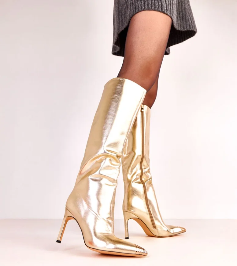 Złote kozaki eleganckie z metalowym noskiem Janisa