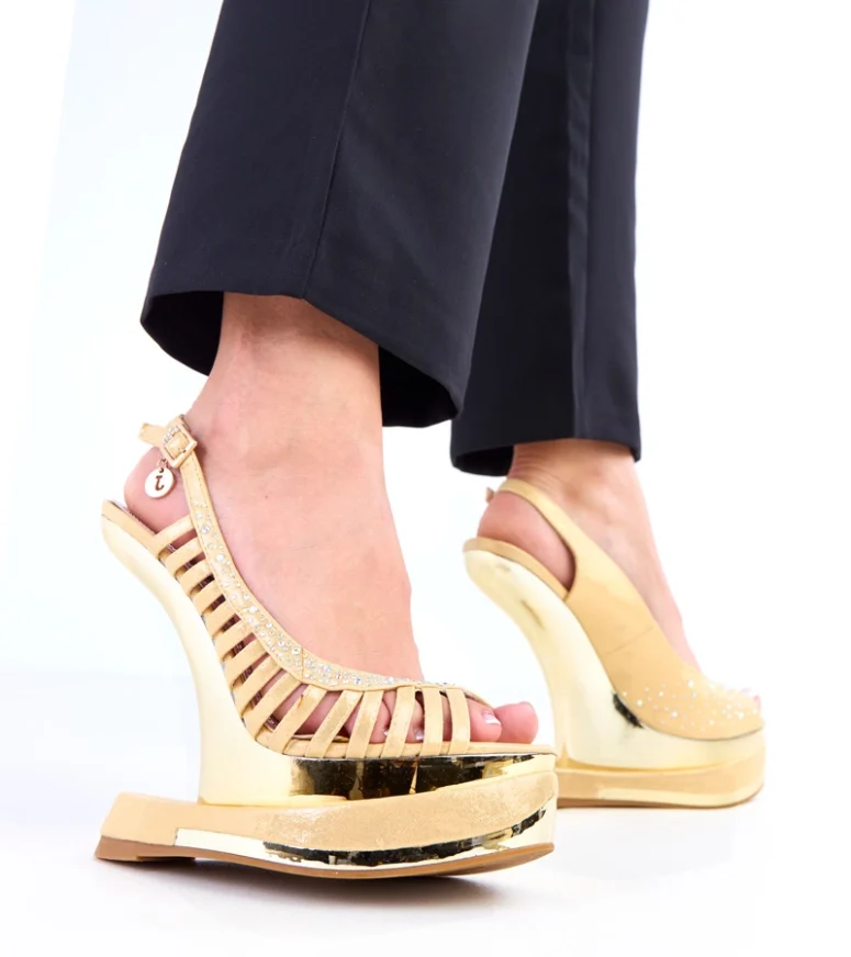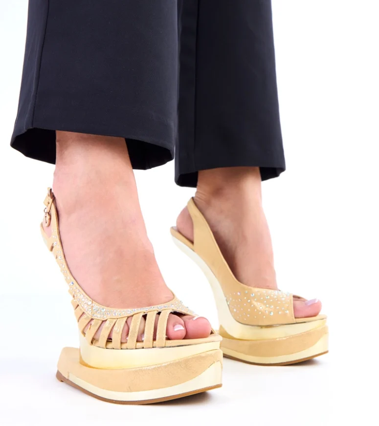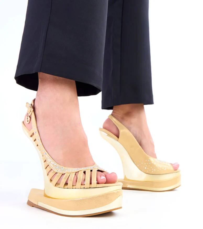 Model Kenni zaprojektowano z myślą o maksymalnym komforcie użytkowania. Stabilny, futurystyczny obcas zapewnia odpowiednie podparcie stopy, dzięki czemu sandały są wygodne nawet podczas dłuższego noszenia. Odpowiednio wyprofilowana wkładka oraz solidne zapięcie wokół kostki gwarantują pewny krok i doskonałe dopasowanie do stopy. To sprawia, że złote sandały z cyrkoniami doskonale sprawdzą się na weselach, przyjęciach, studniówkach, balach oraz wszystkich ważnych wyjściach, kiedy zależy Ci na połączeniu stylu i wygody.