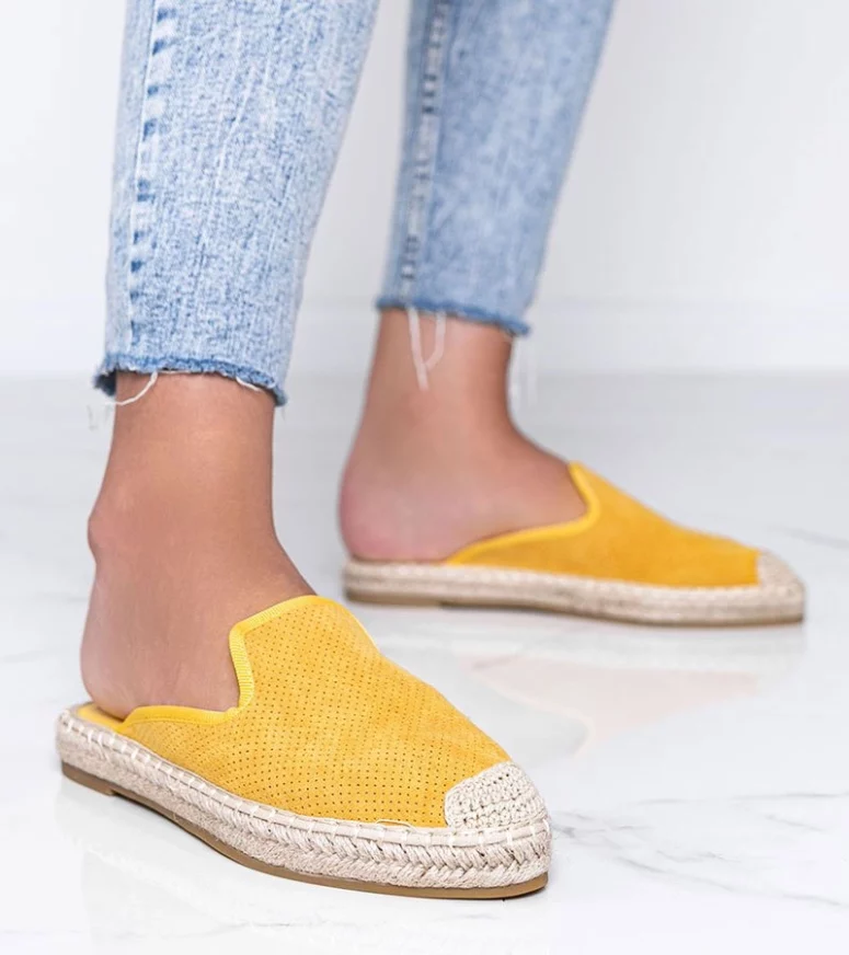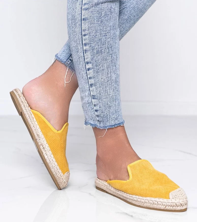 Kinshasa to modne tego sezonu klapki. Stylizowane są na espadryle i to właśnie dlatego są wyjątkowe. Zabudowana cholewka ma delikatny ażurowy wzór w kropeczki. Materiał jest delikatny i przewiewny. Piękny musztardowy kolor będzie stylowym dopełnieniem letnich stylizacji. Numeracja zaniżona, sugerujemy wybrać rozmiar większe.