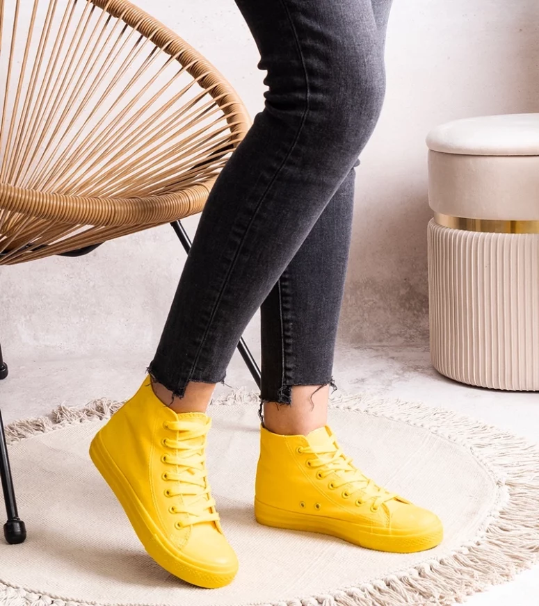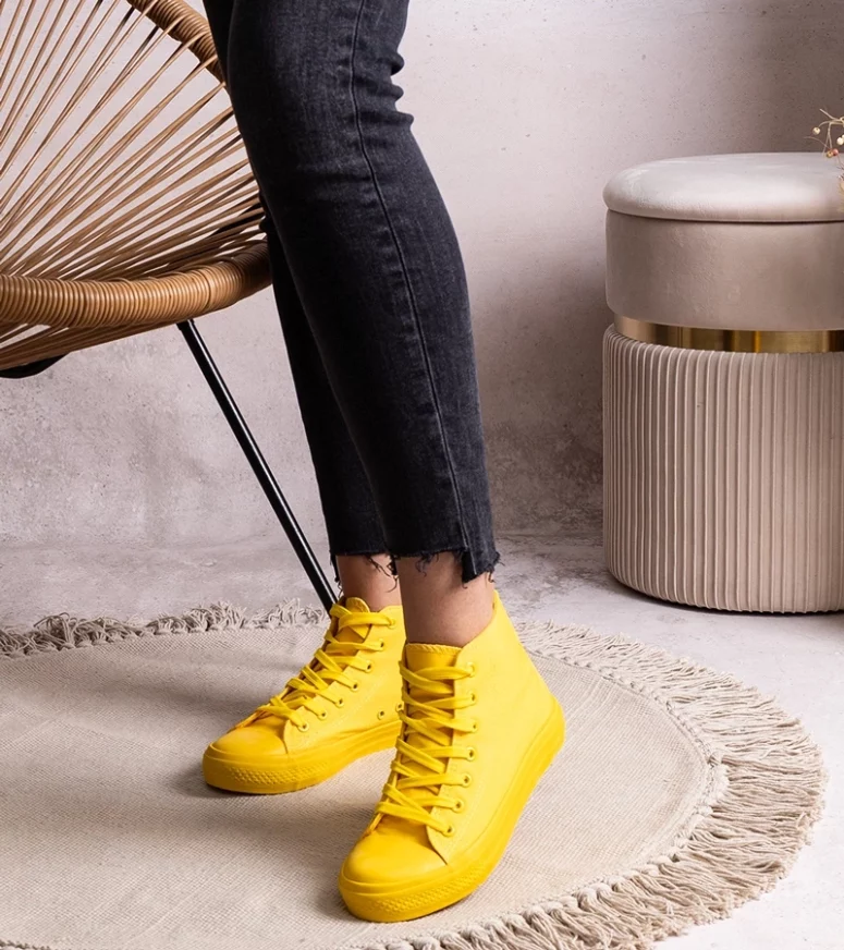 Żółte wysokie trampki Rafife to absolutny sztos! Ich innowacyjny design sprawia, że są na czasie i idealnie pasują do każdej stylizacji. Sznurowane zapewniają doskonałe dopasowanie do stopy, a ich wysoka cholewka dodaje charakteru. Okrągły nosek zapewnia wygodę podczas noszenia, a podeszwa z gumy gwarantuje stabilność i komfort. Te trampki to must-have dla wszystkich miłośników streetwearu!