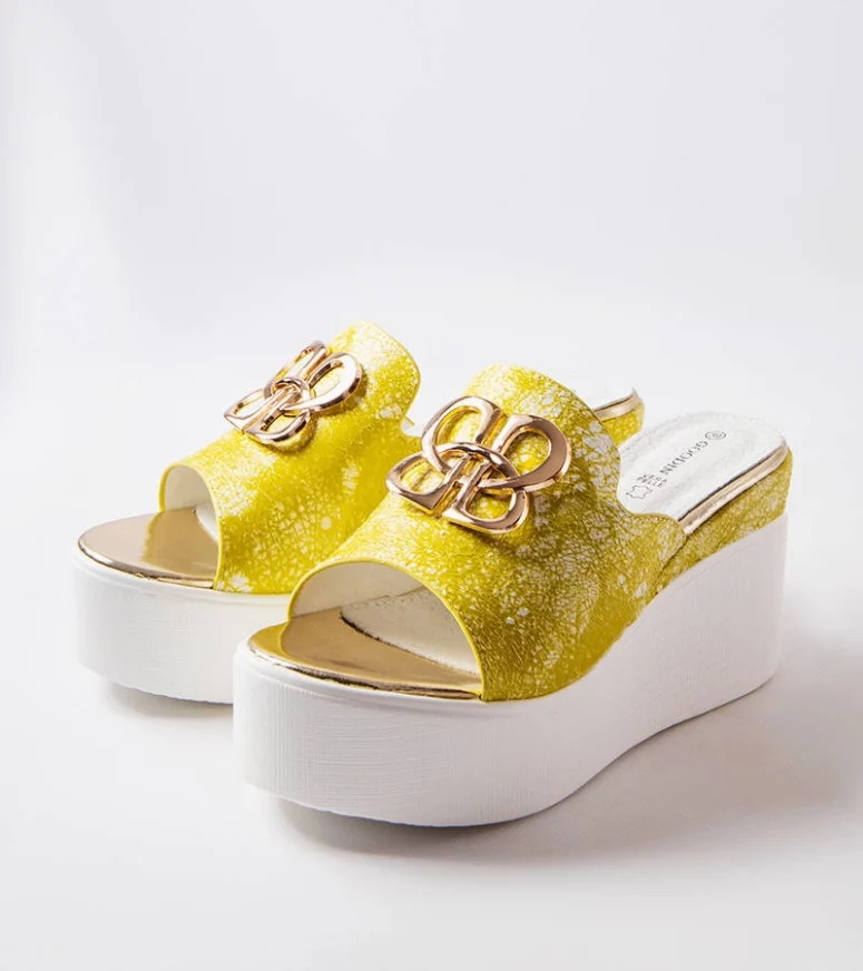 Żółte damskie klapki na koturnie Havanna to absolutny must-have dla młodego pokolenia kobiet, które chcą być trendy i modnie wyglądać nawet w letnie dni. Klapki mają okrągły nosek oraz wykonane są ze skóry naturalnej, co gwarantuje komfort użytkowania. Podeszwa z gumy zapewnia stabilność i bezpieczeństwo podczas chodzenia po mokrej nawierzchni. Te modne klapki na koturnie ożywią każdą letnią stylizację i sprawią, że będziesz czuła się piękna i pewna siebie.