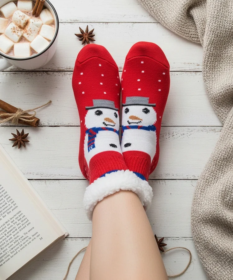 • Czerwone ocieplane skarpety z Bałwankiem Challi