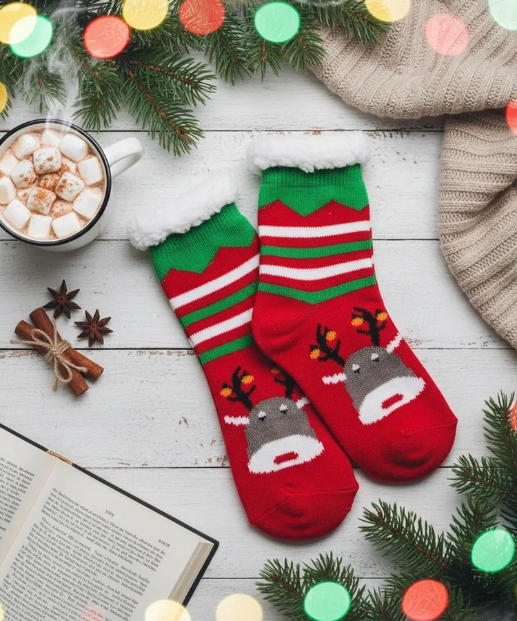 • Czerwone ocieplane skarpety z Reniferem Challi