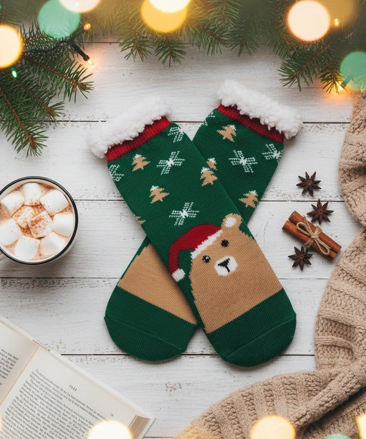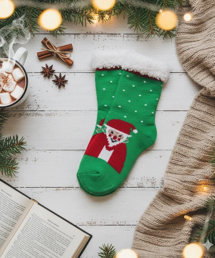 Zielone ocieplane skarpety z Mikołajem Challi