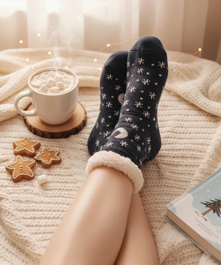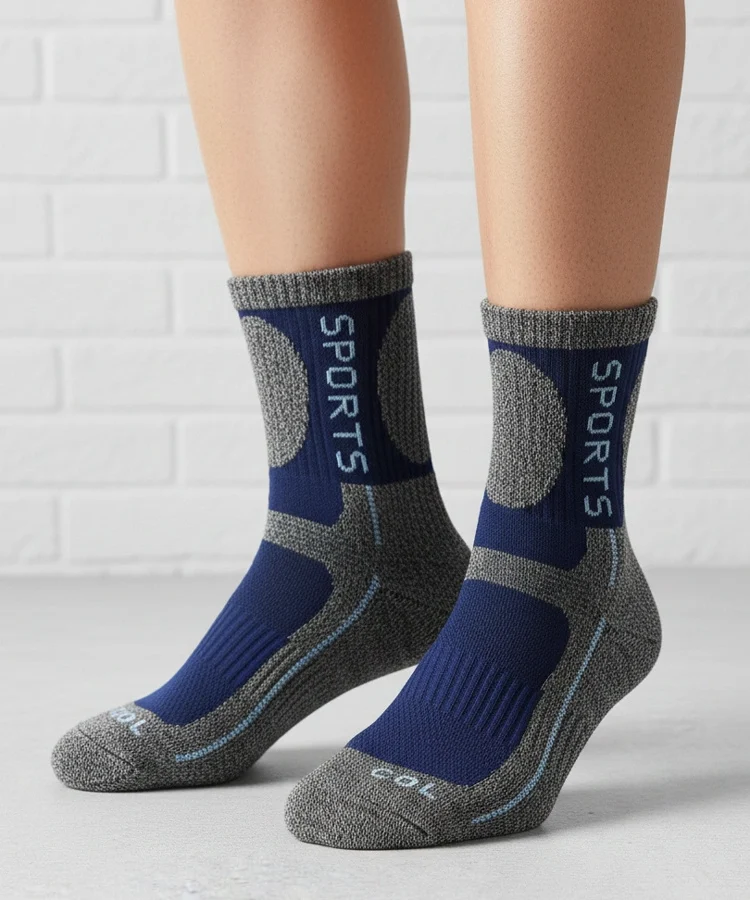 • Szare ciepłe skarpetki z granatowym akcentem Siera