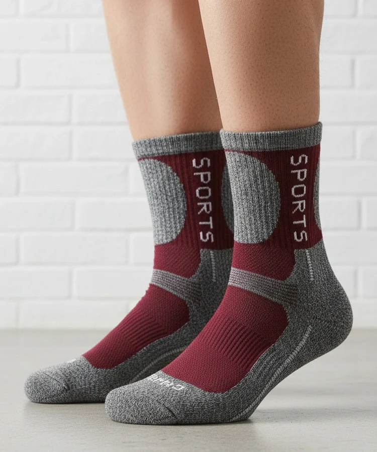 • Szare ciepłe skarpetki z bordowym akcentem Siera