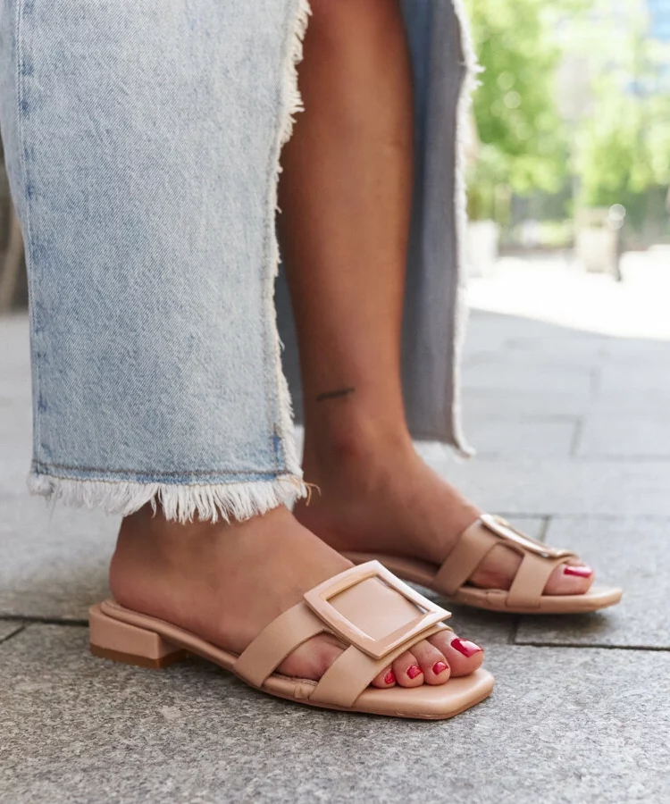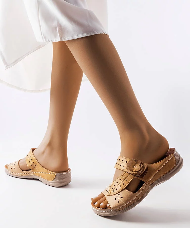 • Beżowe klapki ze skórzaną wkładką Wilia