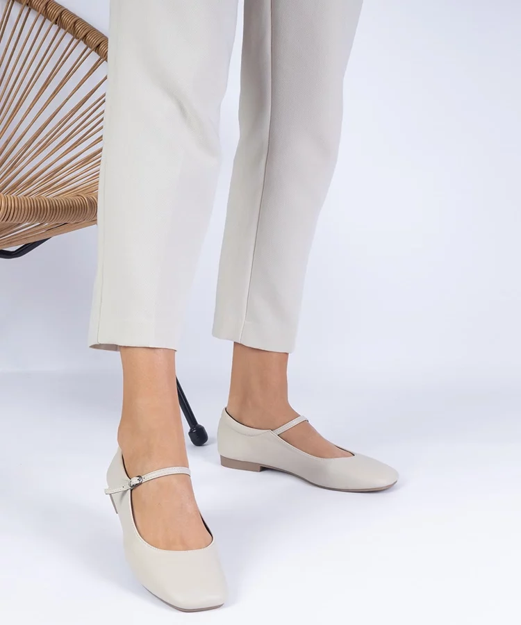 • Beżowe balerinki zapinane na sprzączkę Boutot