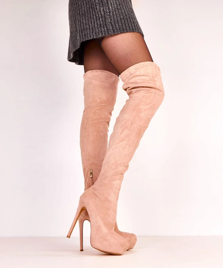 Beżowe kozaki ekozamszowe za kolano Ferros