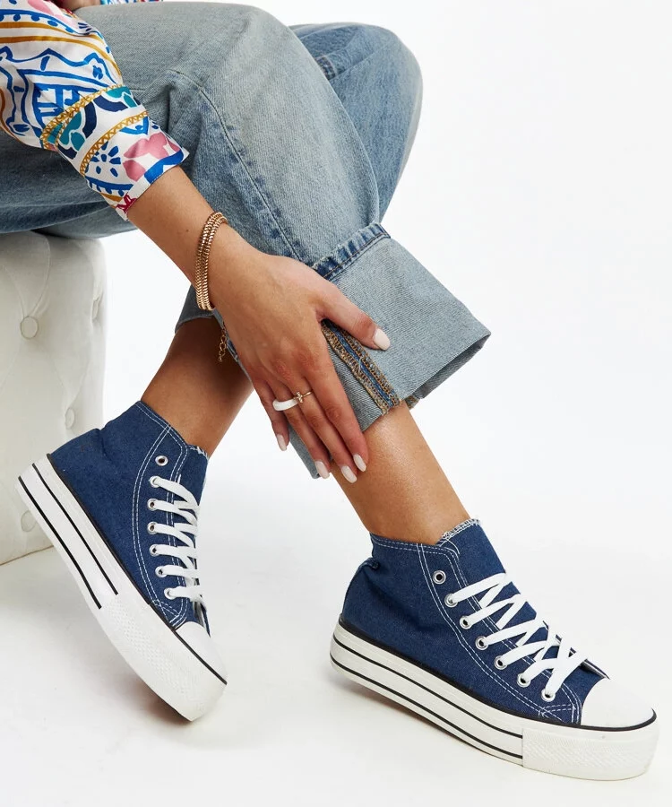 • Jeansowe wysokie trampki na grubej podeszwie Bagy