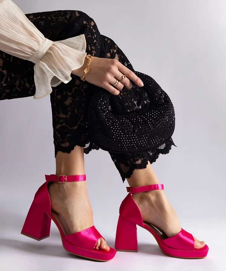 • Różowe satynowe sandały na masywnym obcasie Saucedo