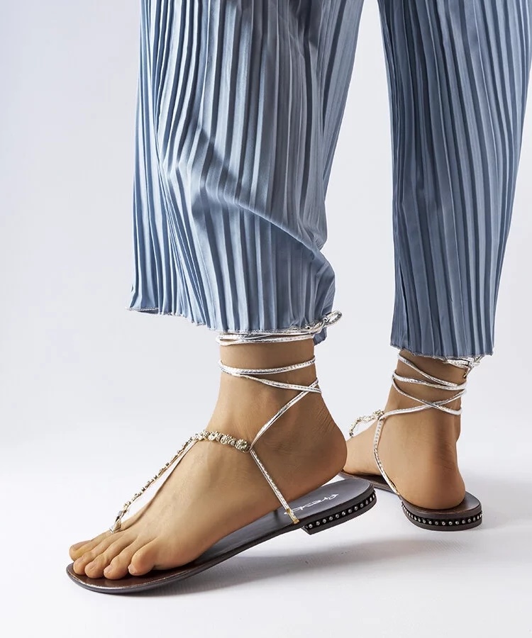 • Sandały ze skórzaną wkładką zdobione cyrkoniami Rossana