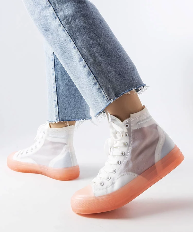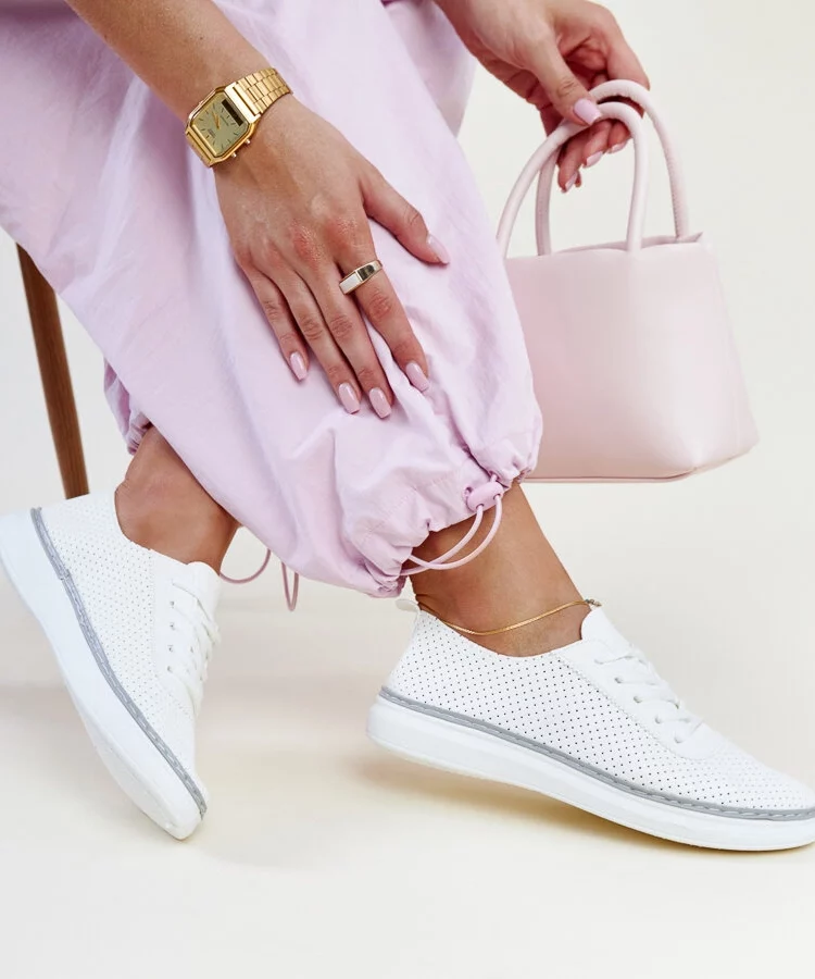 • Białe sneakersy zdobione brokatową gwiazdą Moransa