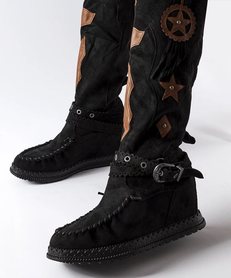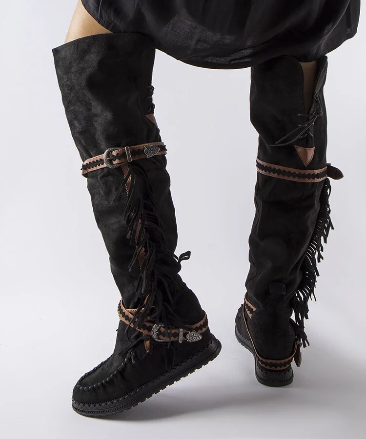 • Czarne kozaki zamszowe w stylu boho Putignano