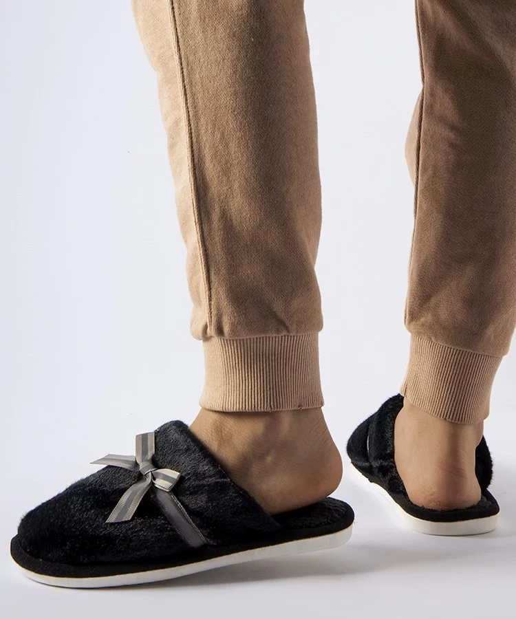 • Czarne ciepłe kapcie z uszami i kokardą Gilda