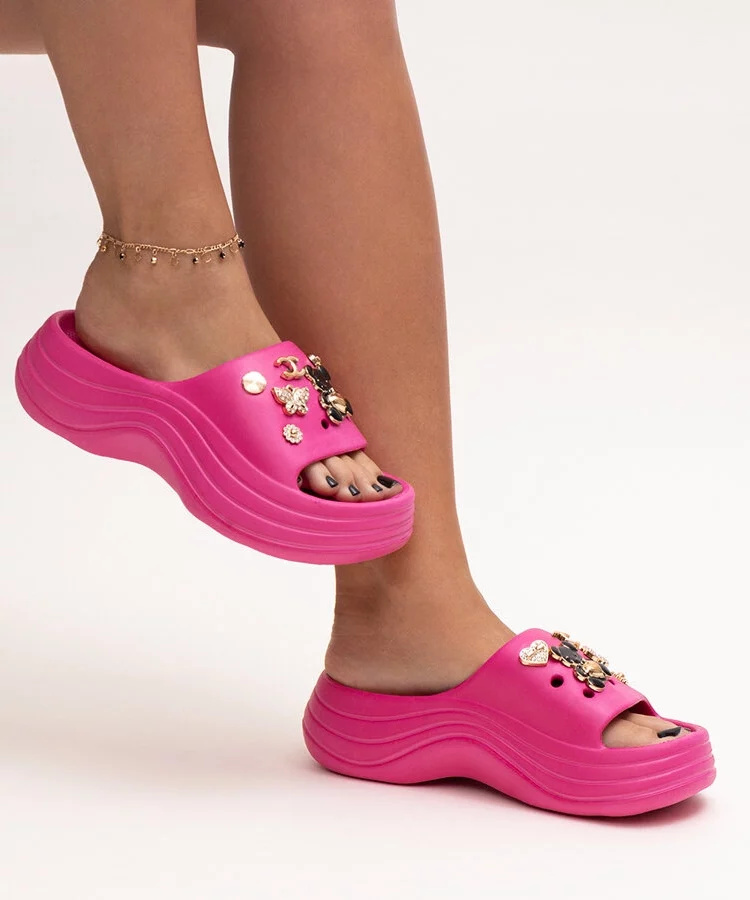 • Ciemnoróżowe klapki na grubej podeszwie Elina