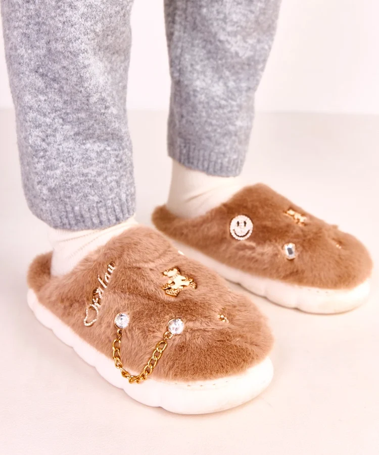 • Brązowe zabudowane kapcie z ozdobami Verdugo
