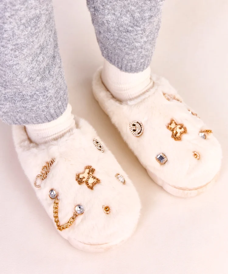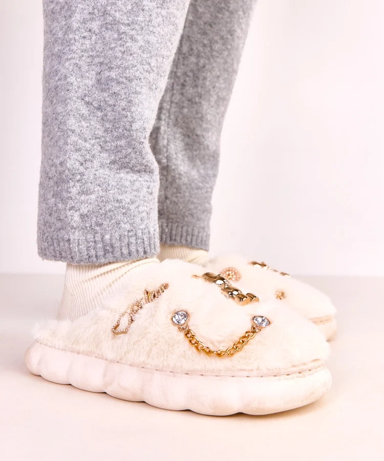 • Białe zabudowane kapcie z ozdobami Verdugo