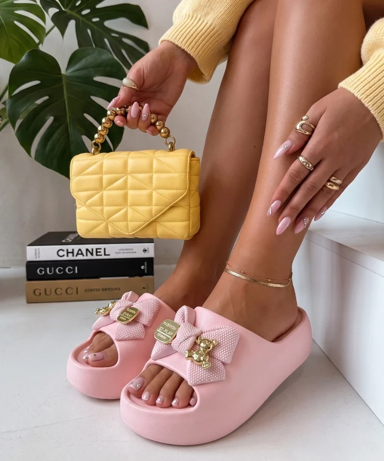 Różowe Klapki Na Platformie Z Kokardą Nina