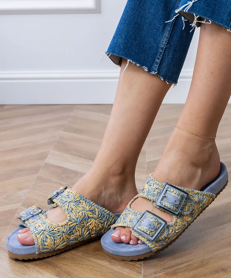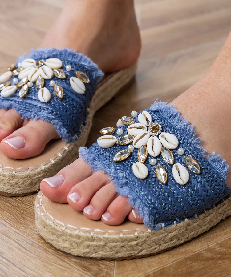 Niebieskie klapki espadryle plecione z muszelkami Morsa