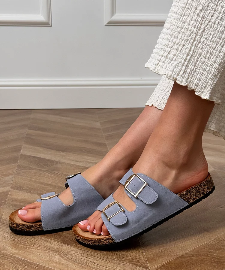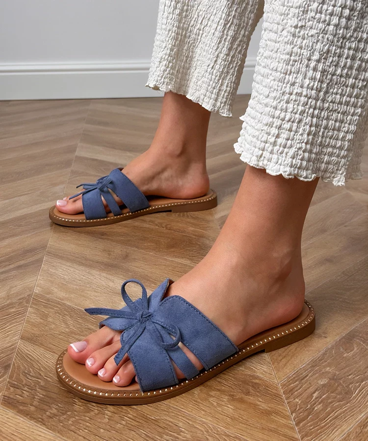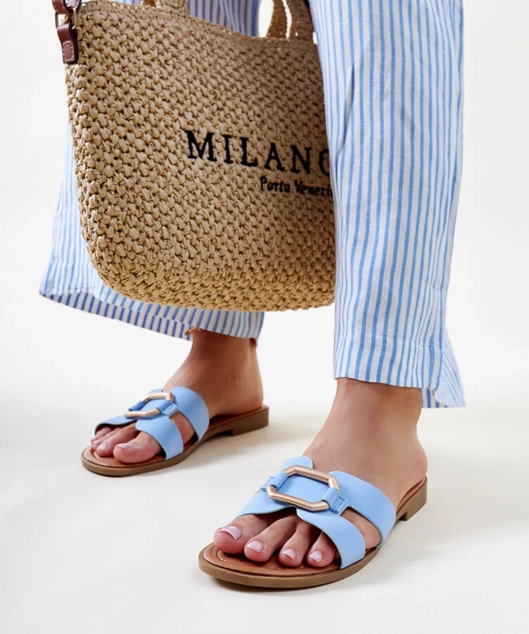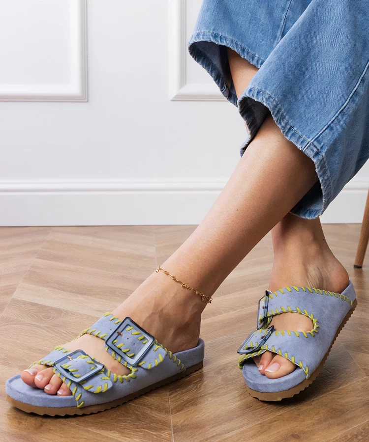Niebieskie klapki z haftowanym paskiem Fargiza