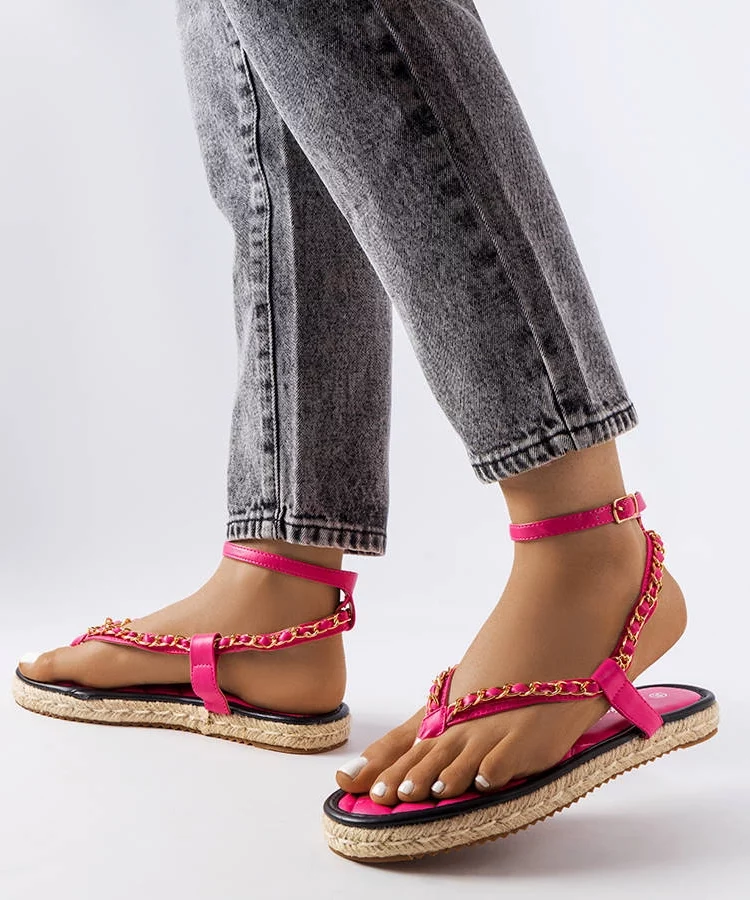 Różowe sandałki zdobione łańcuszkiem Varieur