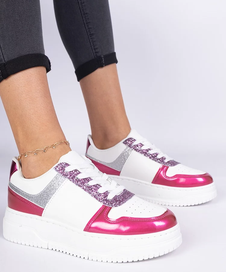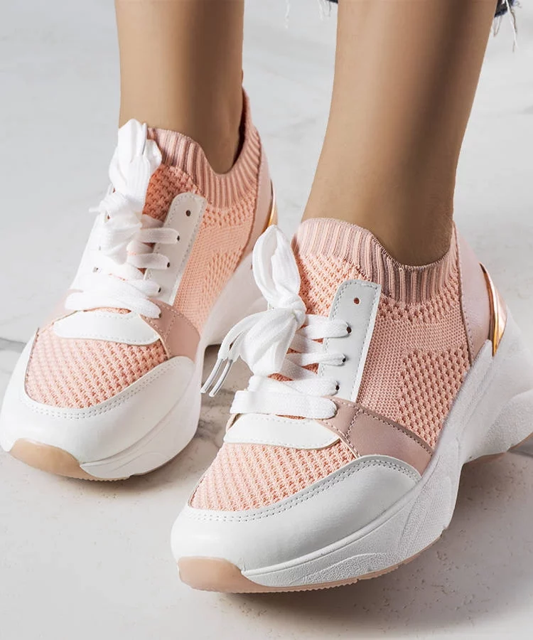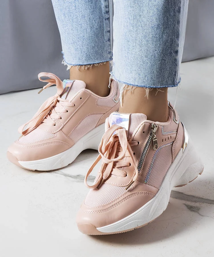 • Różowe sneakersy na niskiej koturnie Mathieu