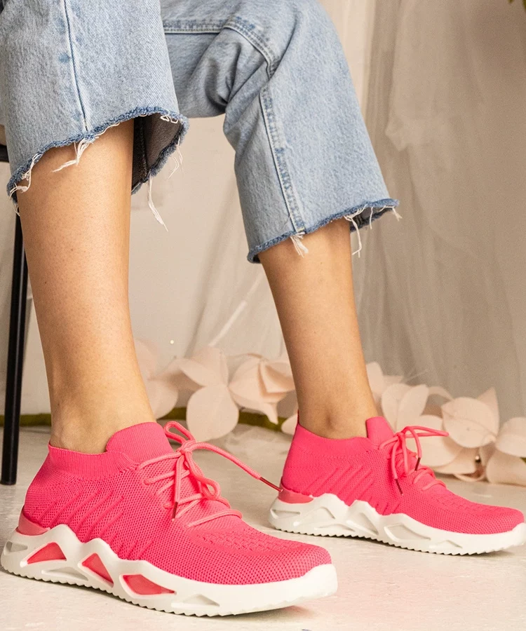 • Różowe sneakersy damskie z skarpetkową cholewką Miyana