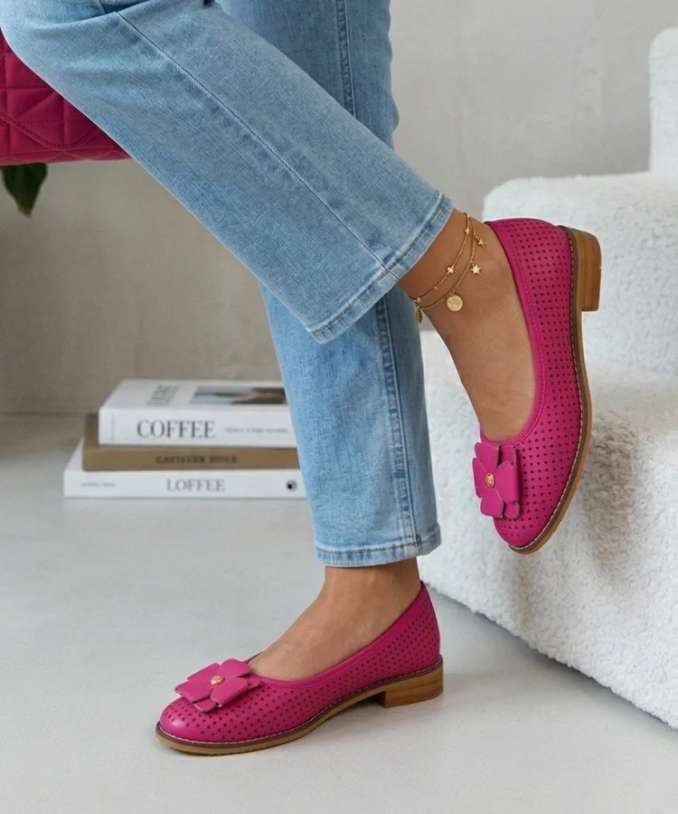Różowe Skórzane Ażurowe Baleriny Cambell