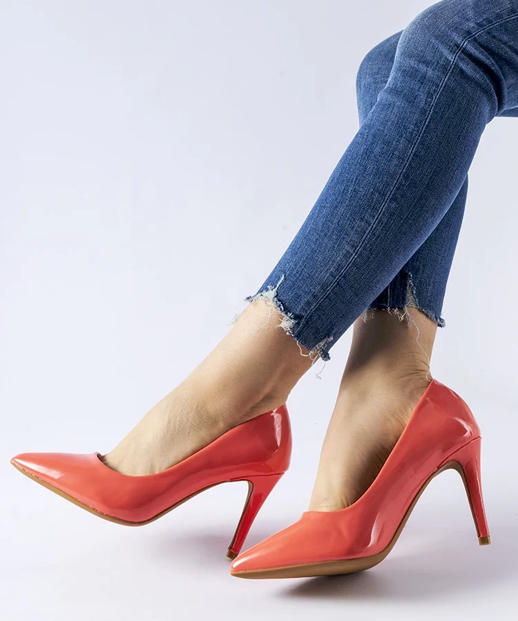 • Różowe szpilki brokatowe z kokardką i cyrkoniami Merkuri