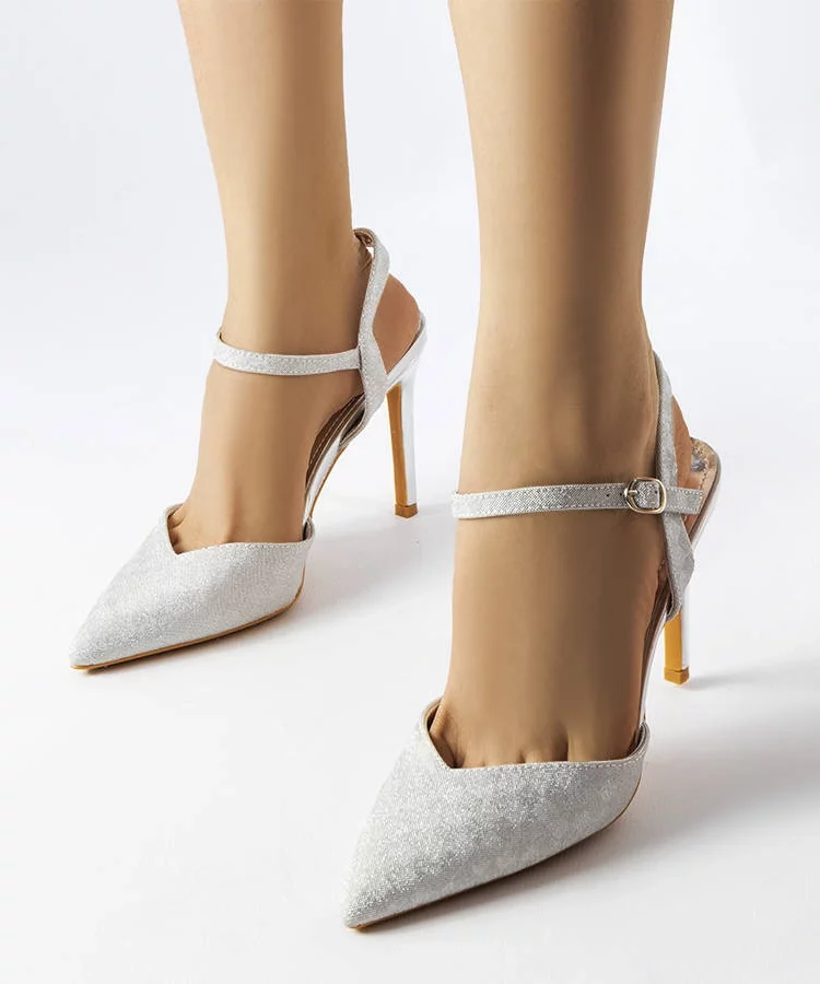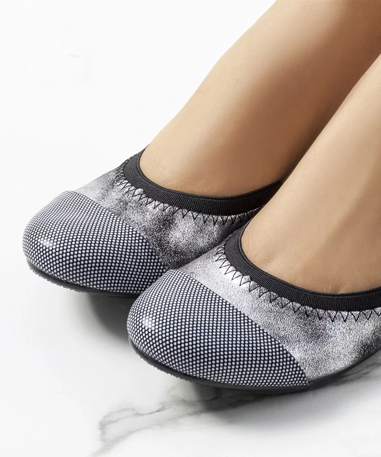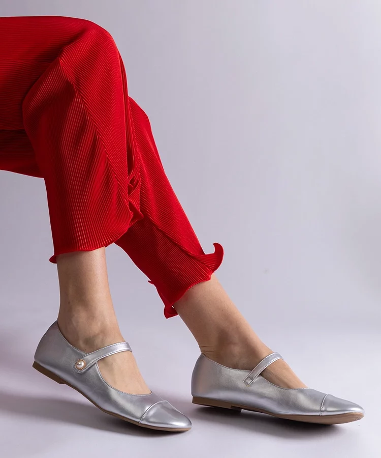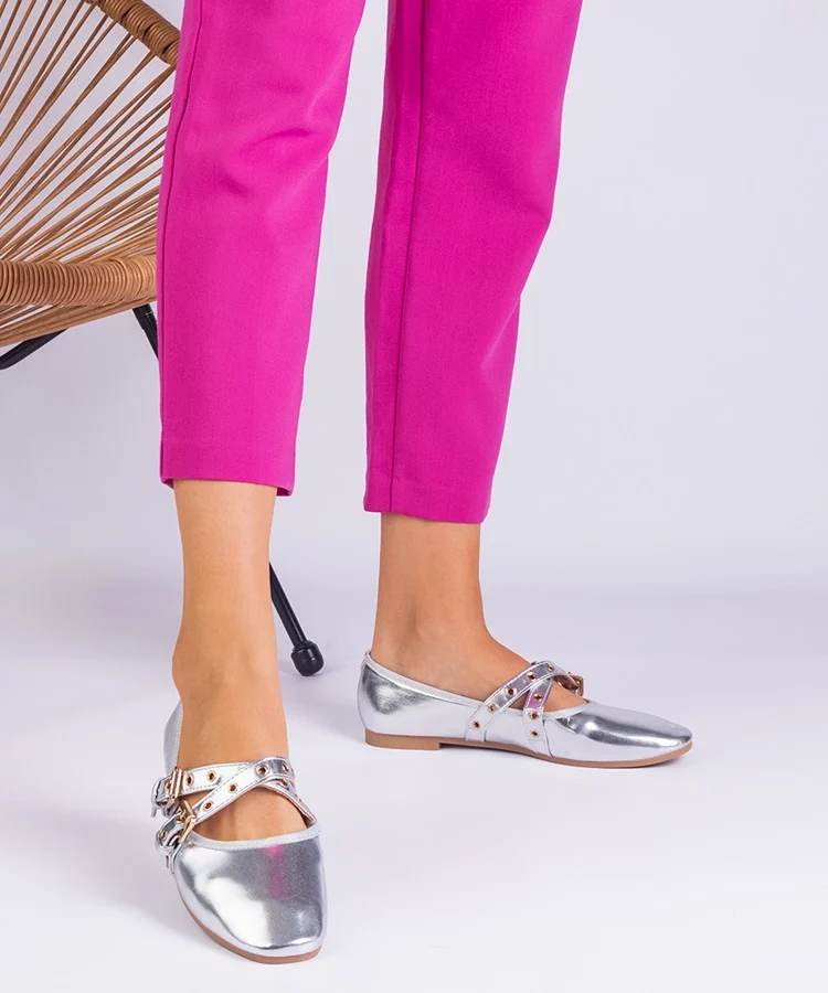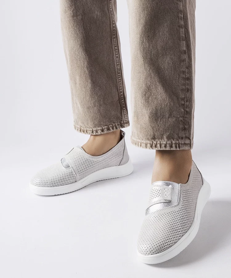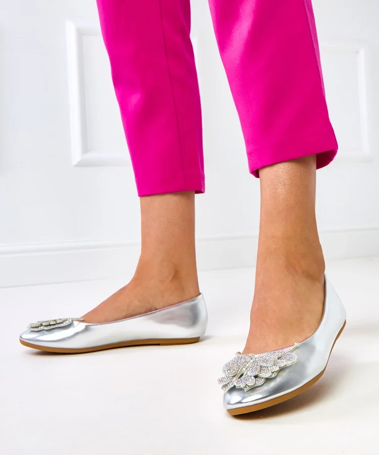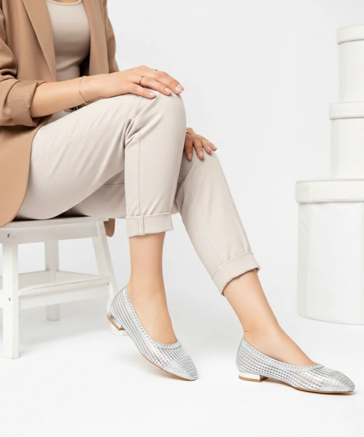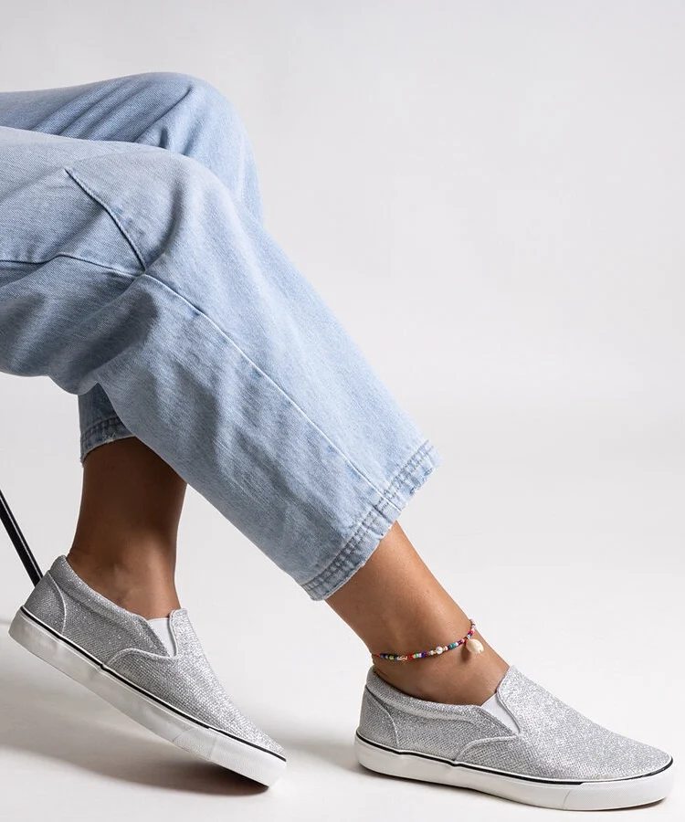 Srebrne brokatowe mokasyny z cyrkoniami Sawelia