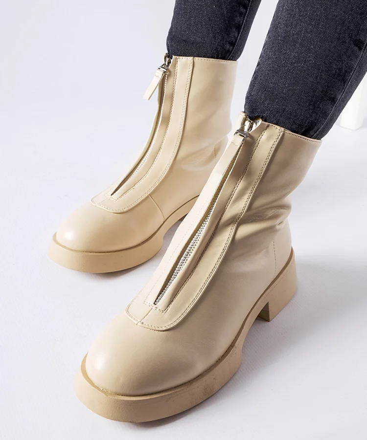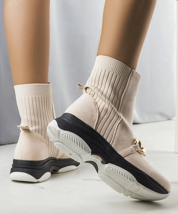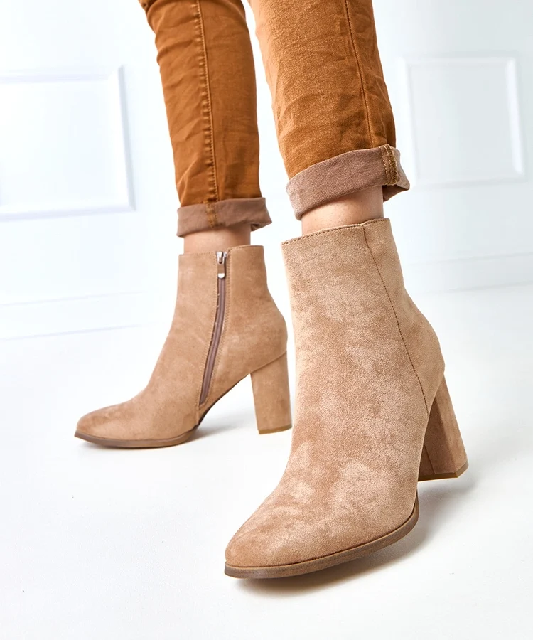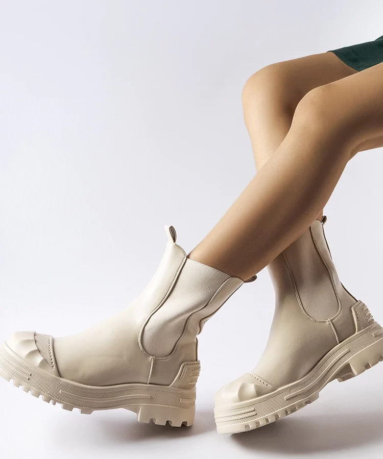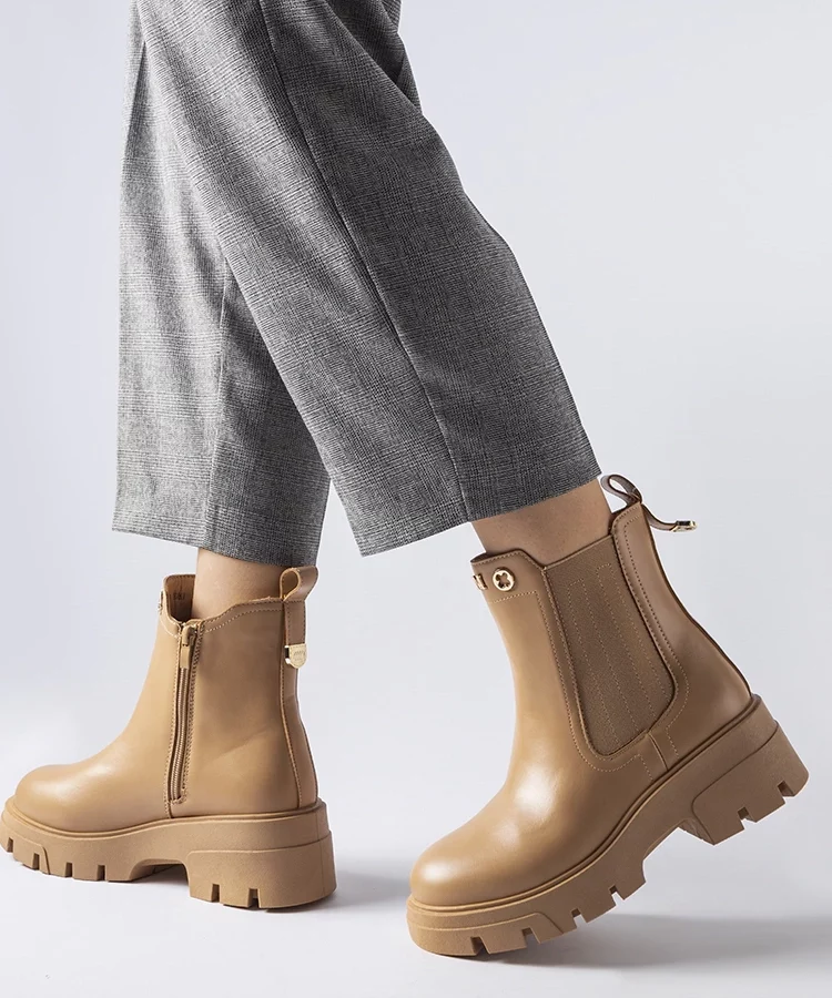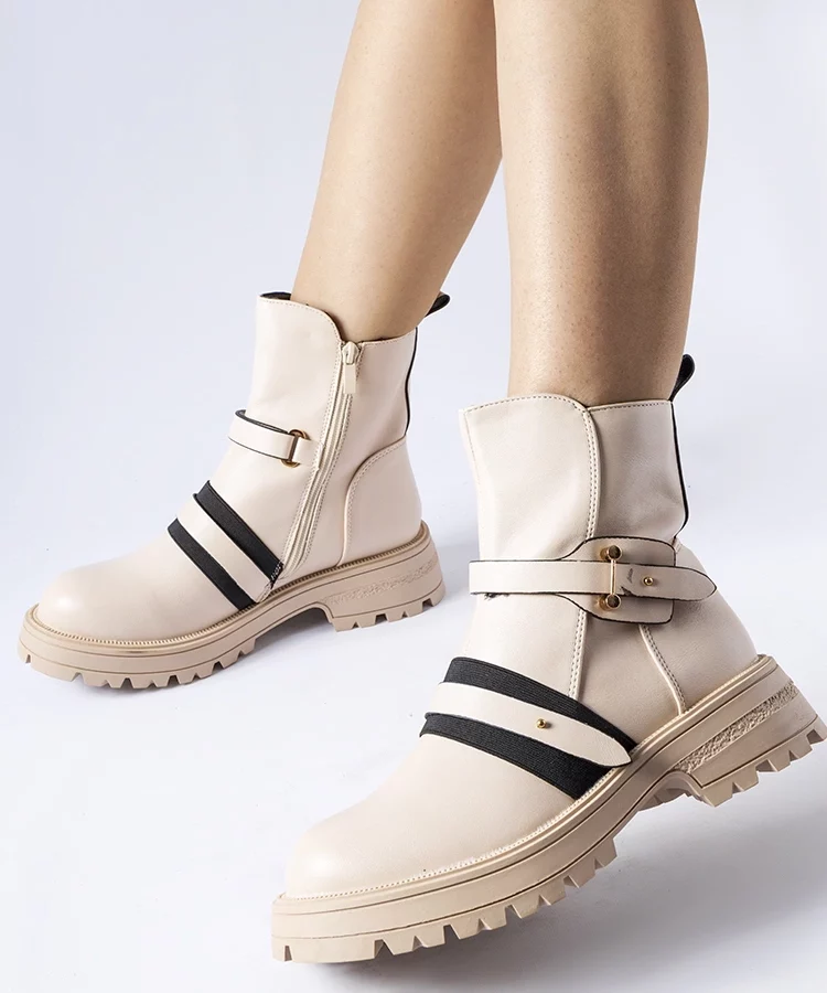Beżowe ocieplane botki na platformie zdobione kamieniami Dajana