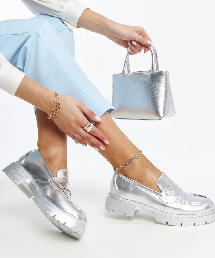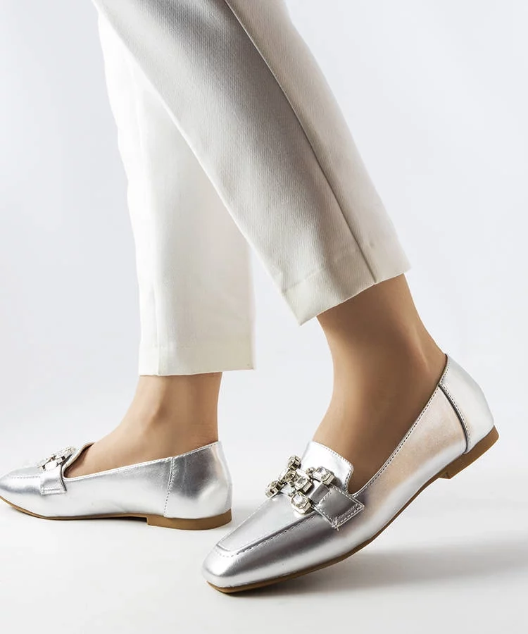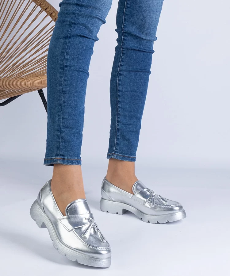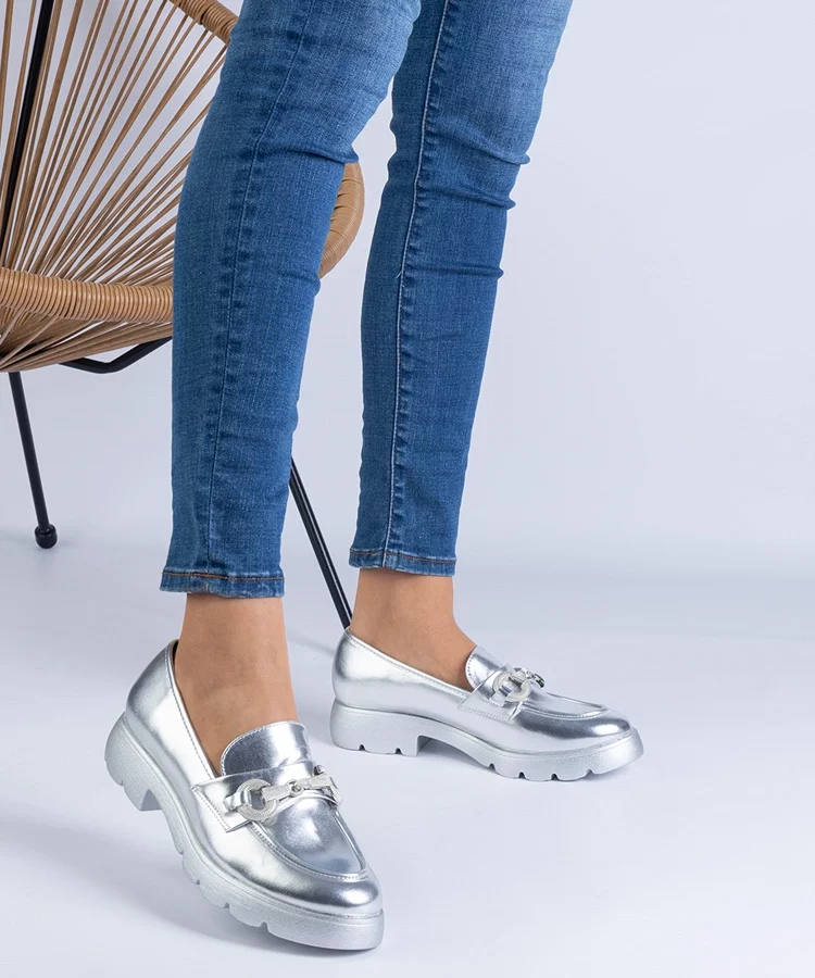 Srebrne mokasyny Eko skórzane Mladenka