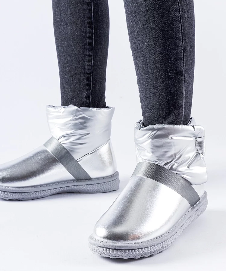 • Srebrne połyskujące krótkie śniegowce Delaune