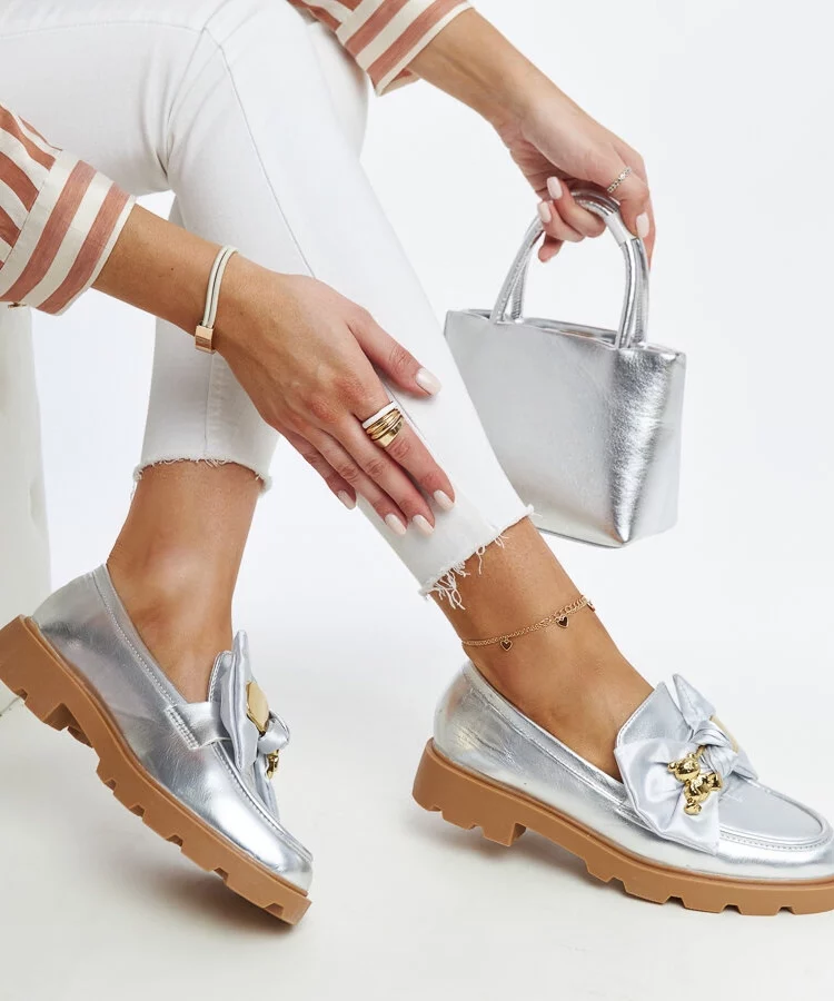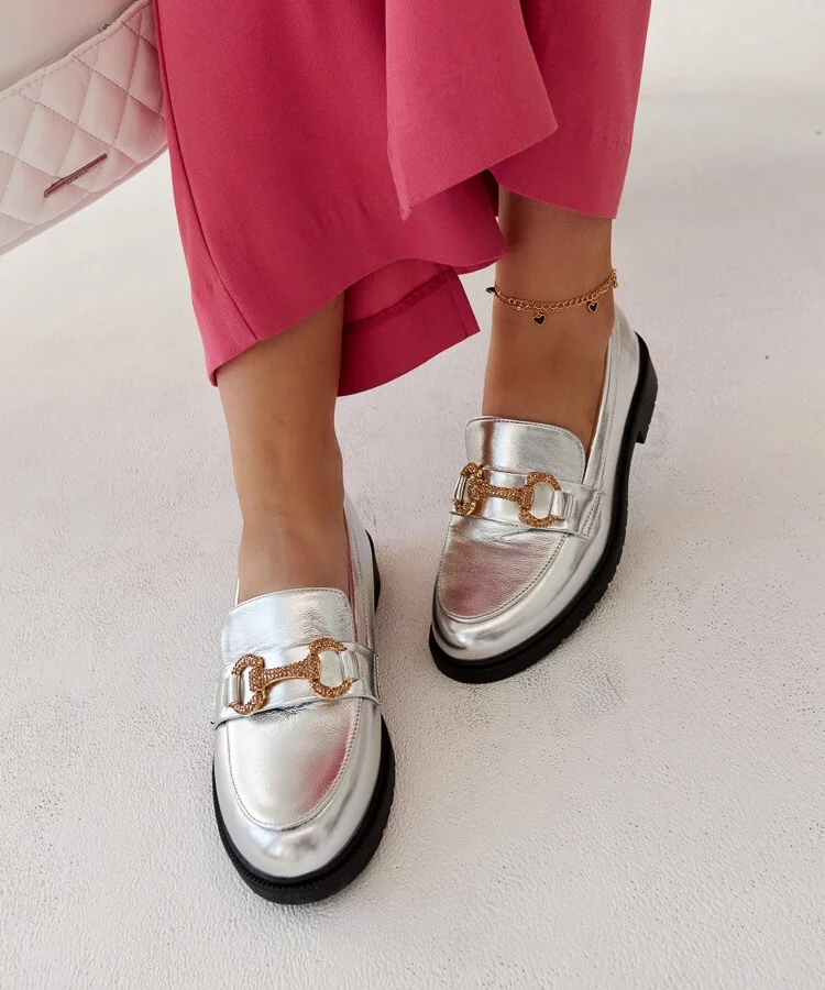 Srebrne mokasyny z ozdobną agrafką Bogumila