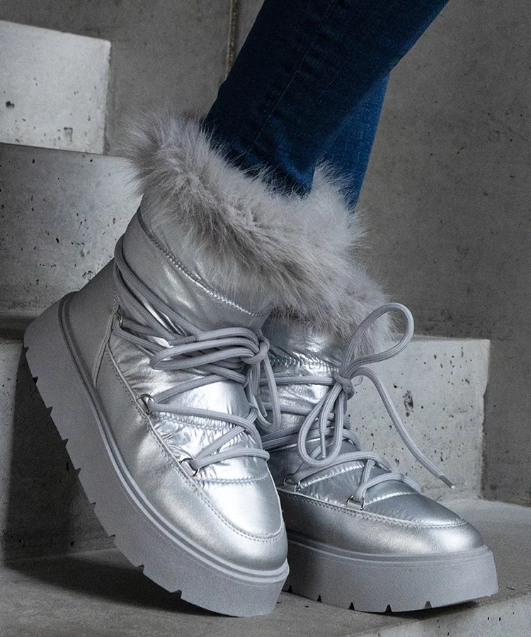 • Srebrne ocieplane śniegowce z futerkiem Arilla