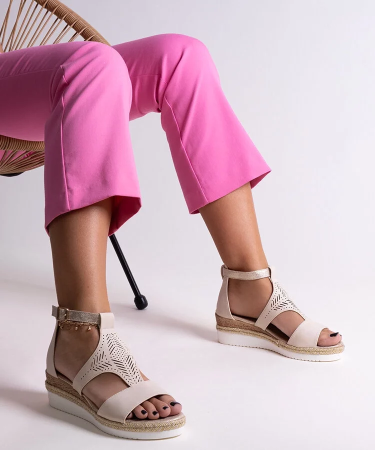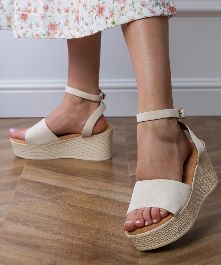 Beżowe Sandały Na Niskiej Koturnie Cosima