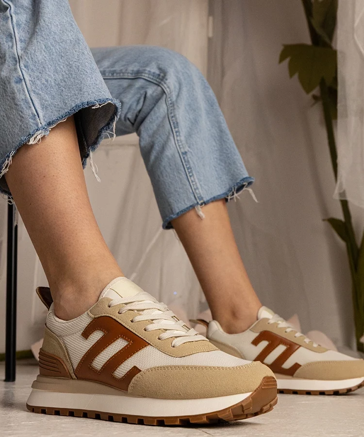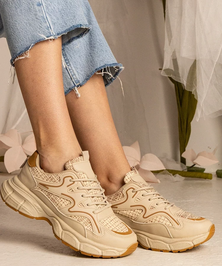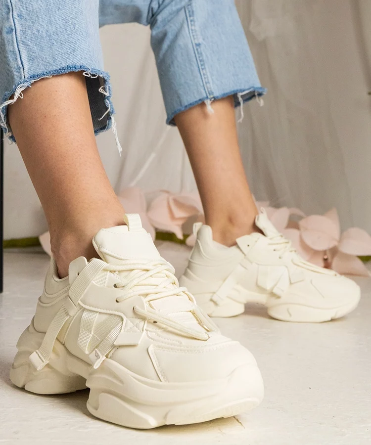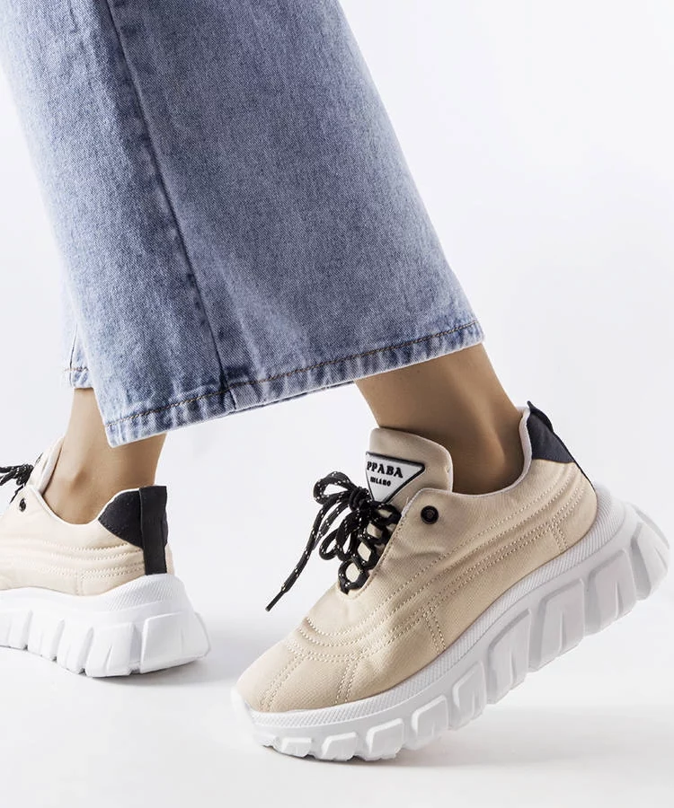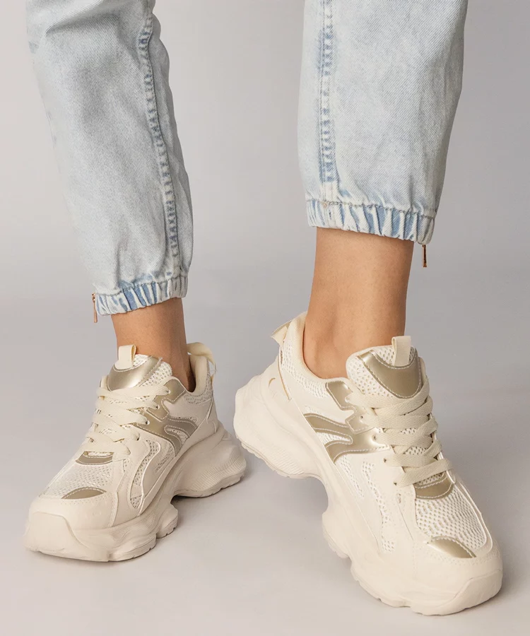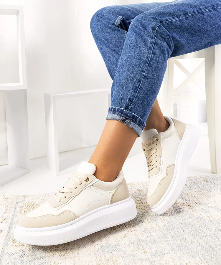 • Beżowe sneakersy damskie na masywnej podeszwie Balika