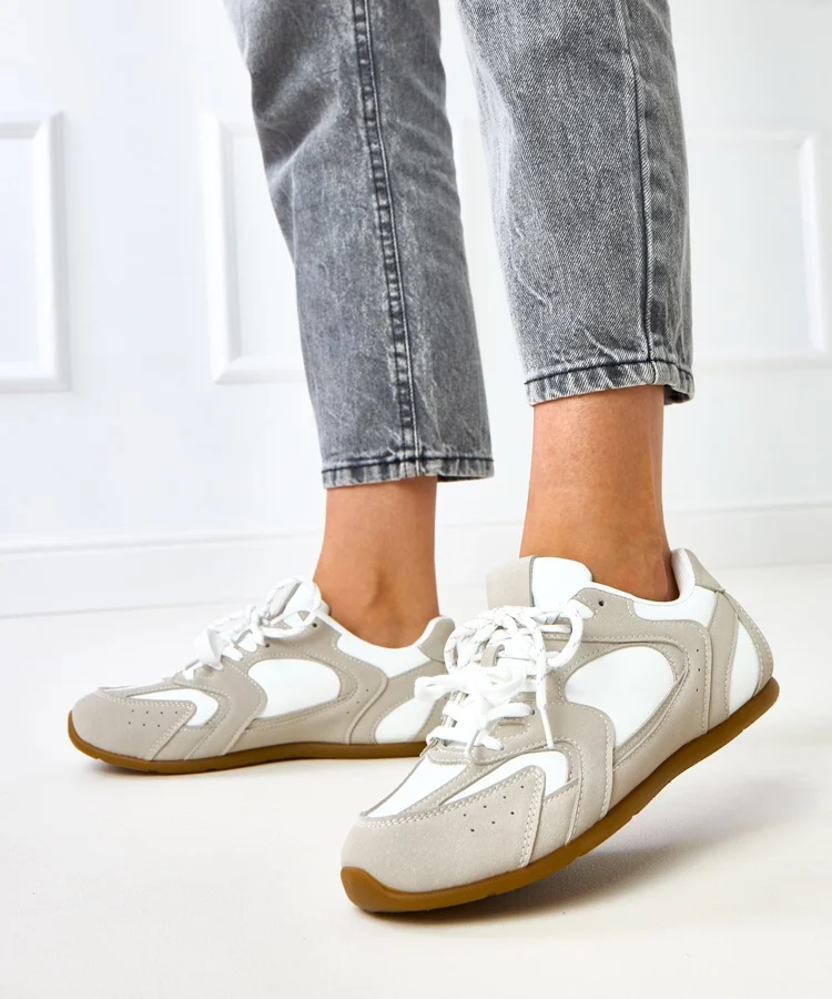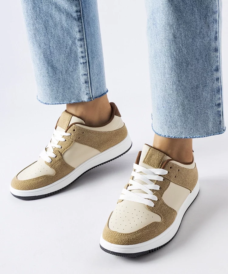 • Beżowe sneakersy damskie z dekoracyjnym sznurowaniem Grejs