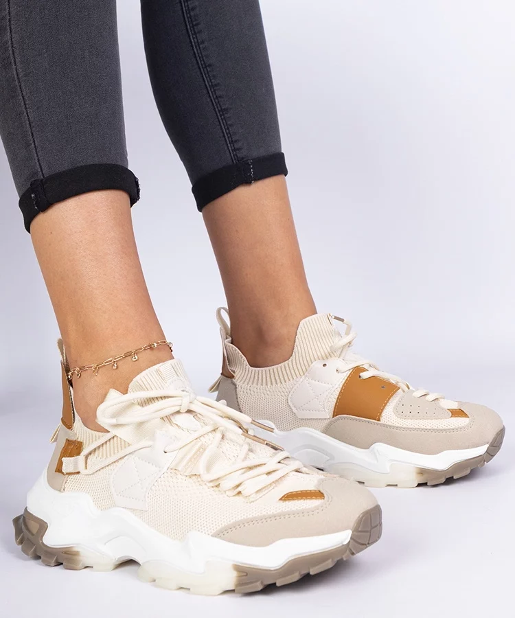 Beżowe sneakersy na grubej podeszwie Sylvie