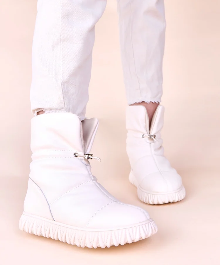 • Beżowe śniegowce z ozdobnym haftem Ciana