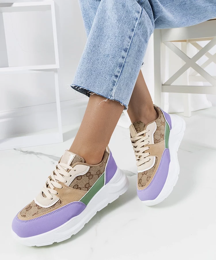 • Beżowo-białe sneakersy z ozdobną nitką Acciano