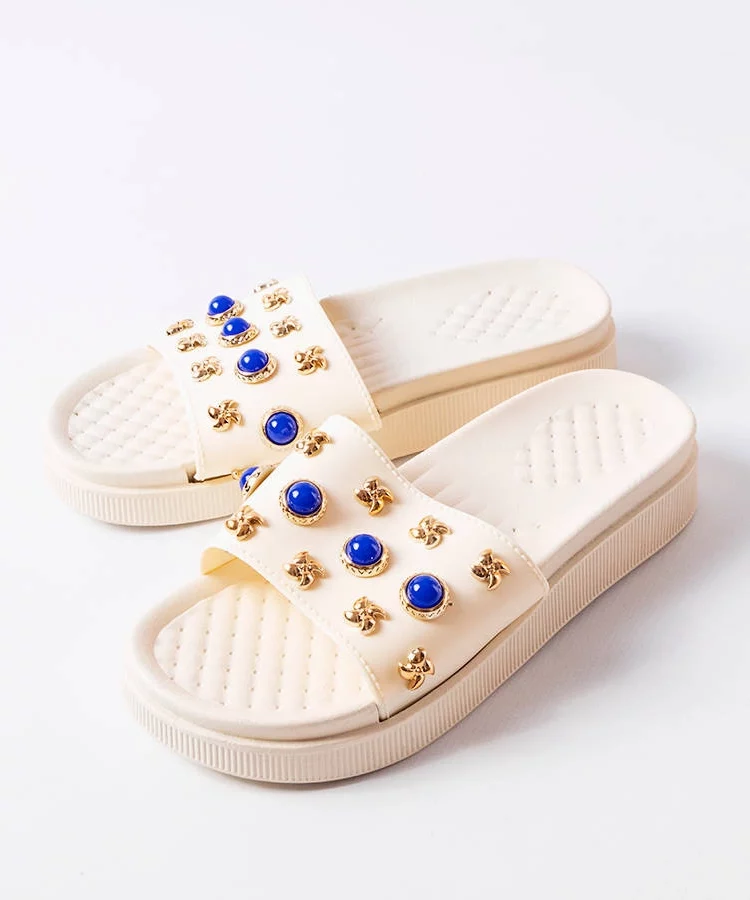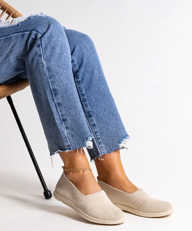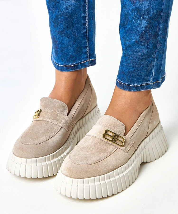 • Beżowe zabudowane kapcie ocieplane z zapięciem Unseta