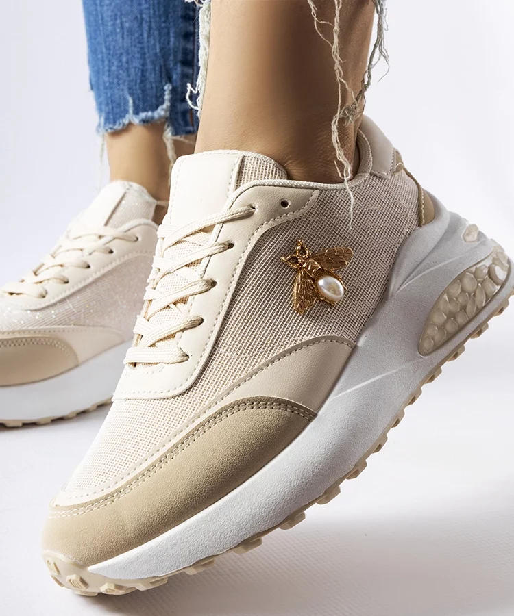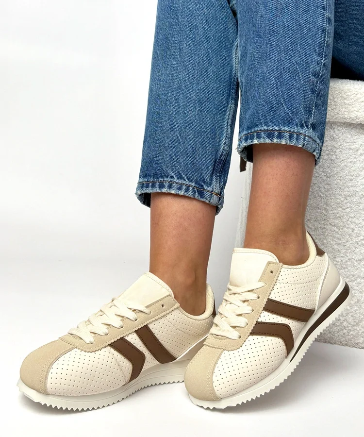 Beżowo-białe sneakersy z ozdobną nitką Acciano