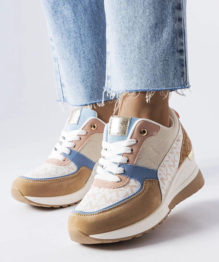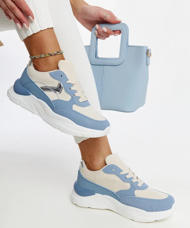 • Beżowo-niebieskie sneakersy na platformie Nereida