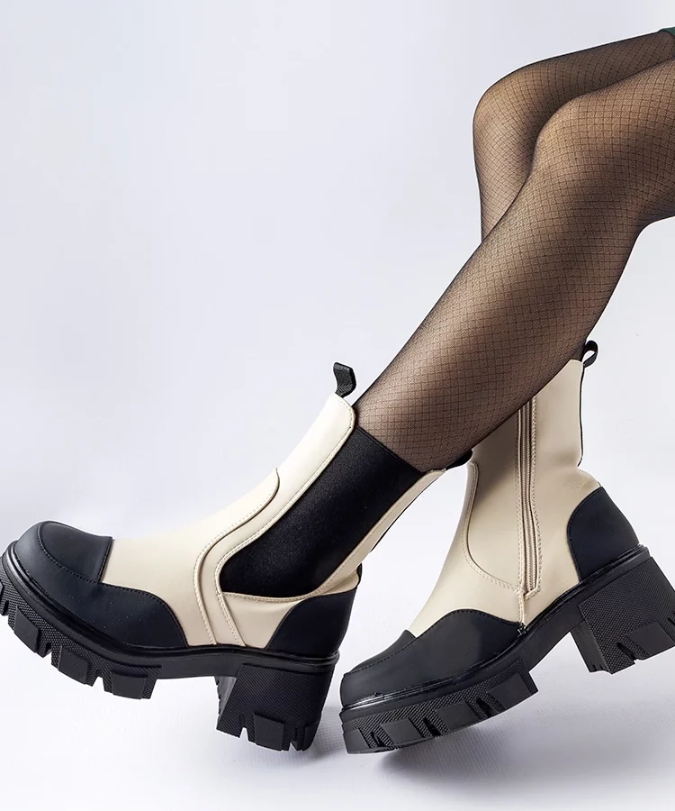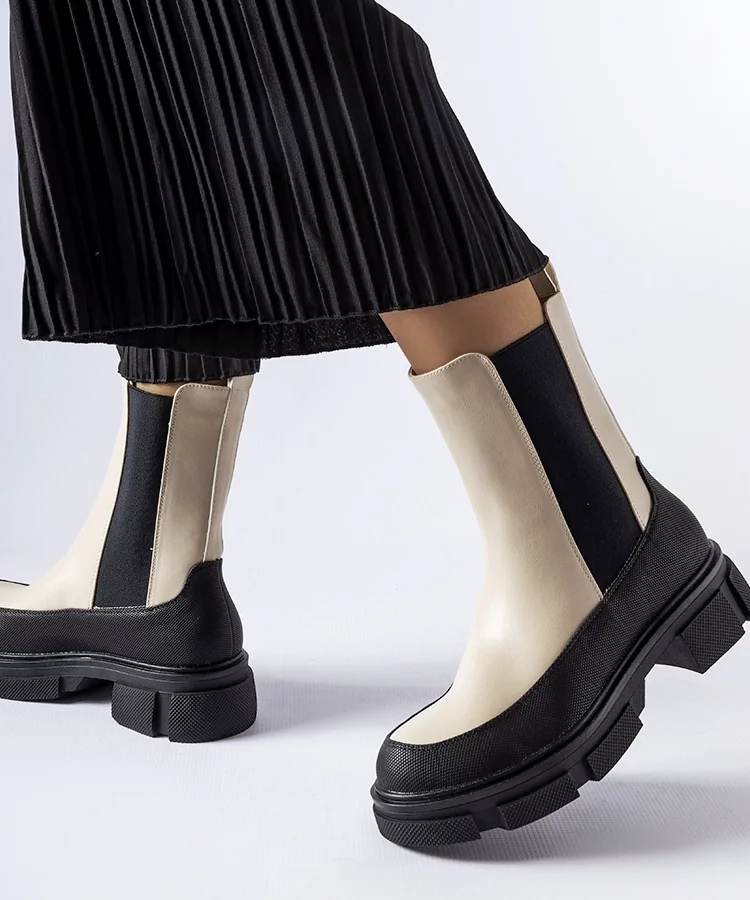 • Beżowo-czarne wsuwane masywne botki Mafalda
