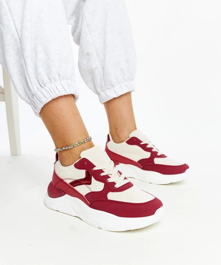 • Beżowo-czerwone sneakersy na platformie Nereida
