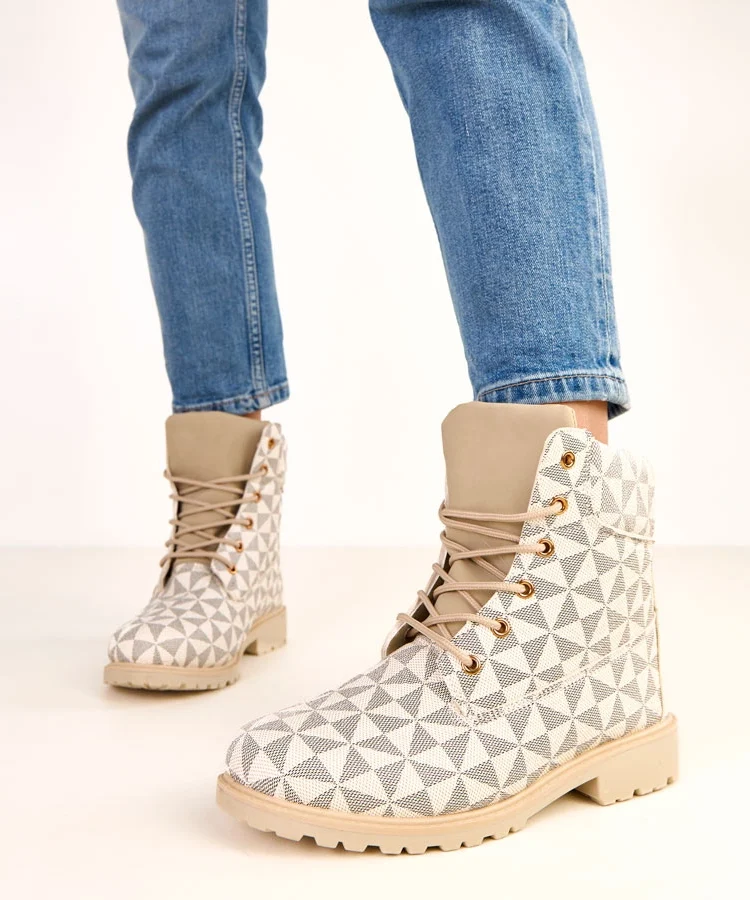 Beżowo-czarne trapery workery w geometryczny wzór Alicia